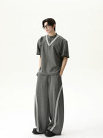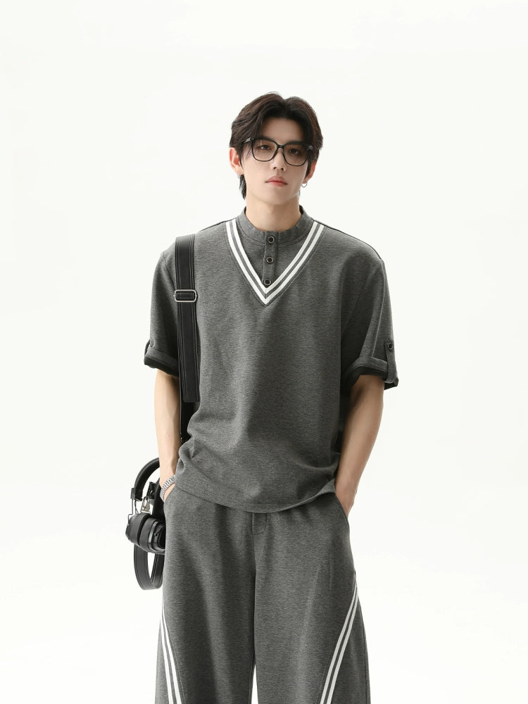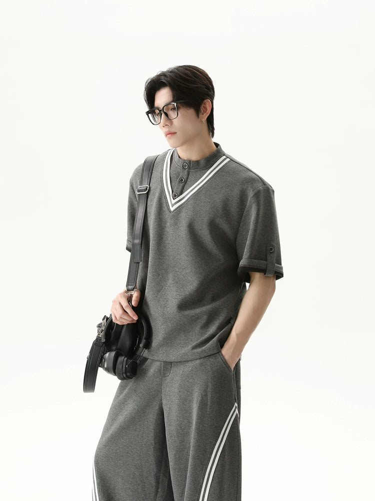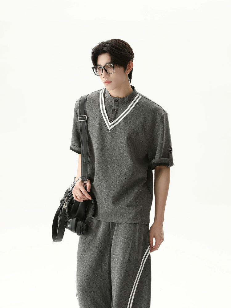 Kısa Kollu Çizgili Rahat Takım Pantolon Seti