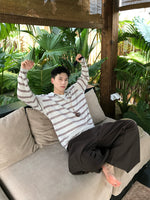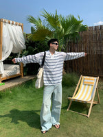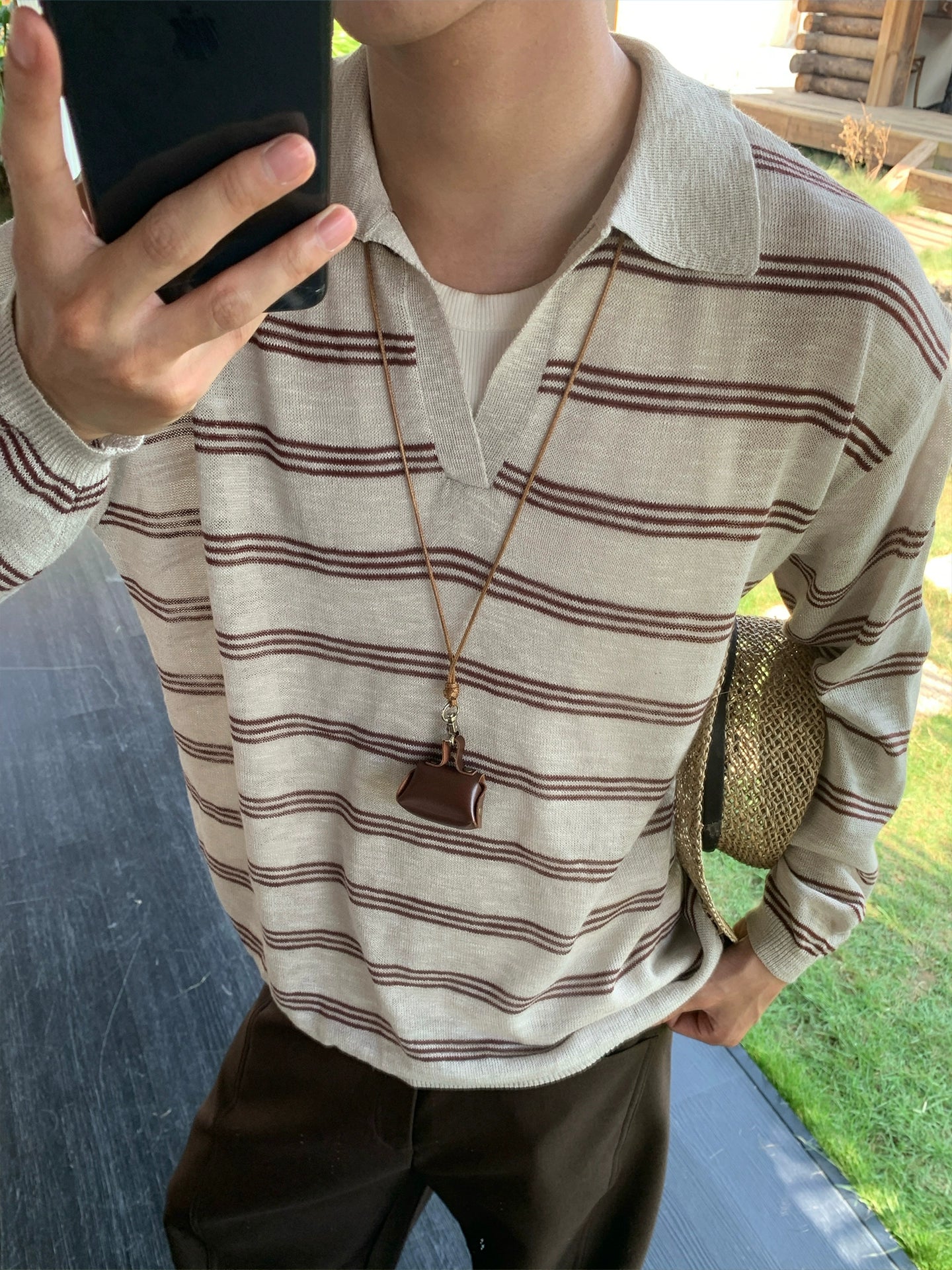 Çizgili V Yaka Uzun Kollu Polo Tişört