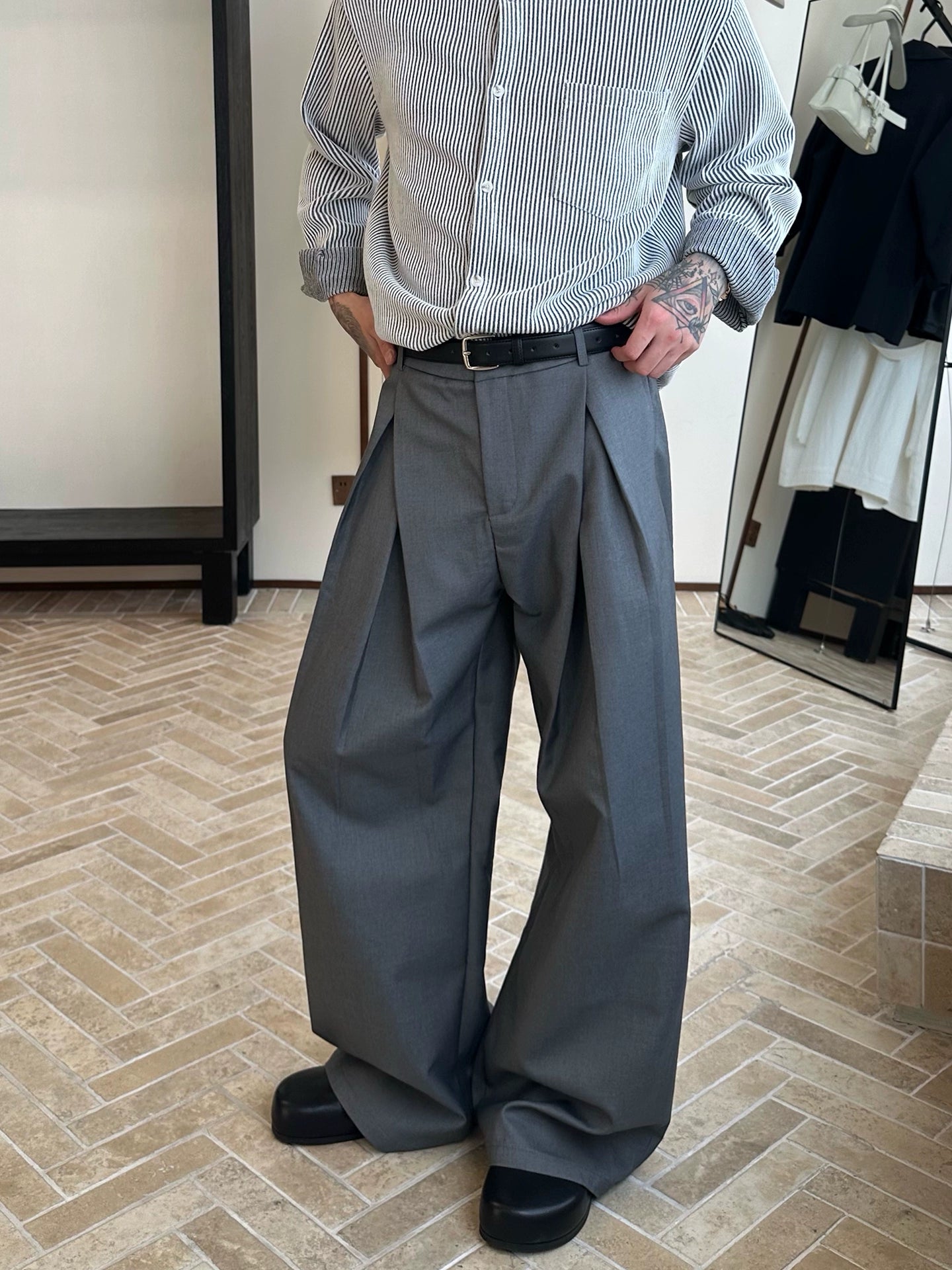 Rahat kesim Düz paça Plise Pantolonlar