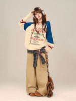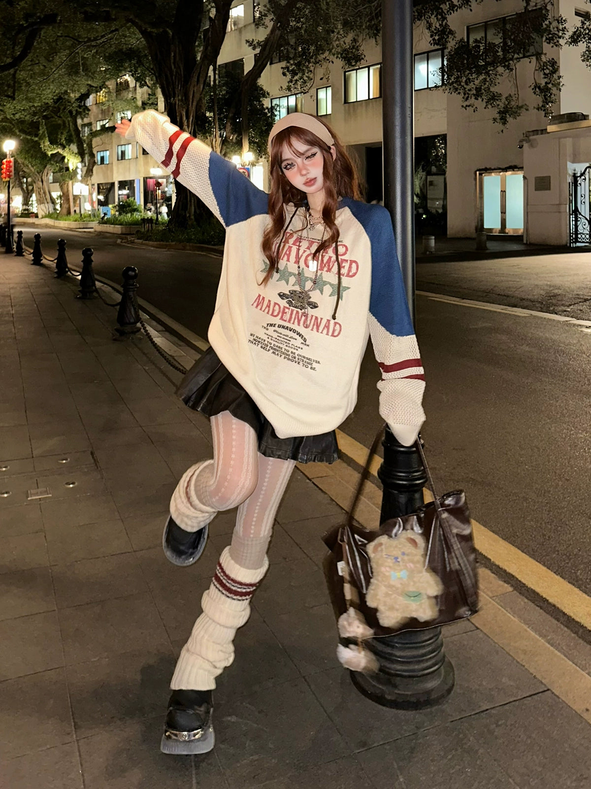 Üniversite Tarzı Bol Örgü Grafik Kazak