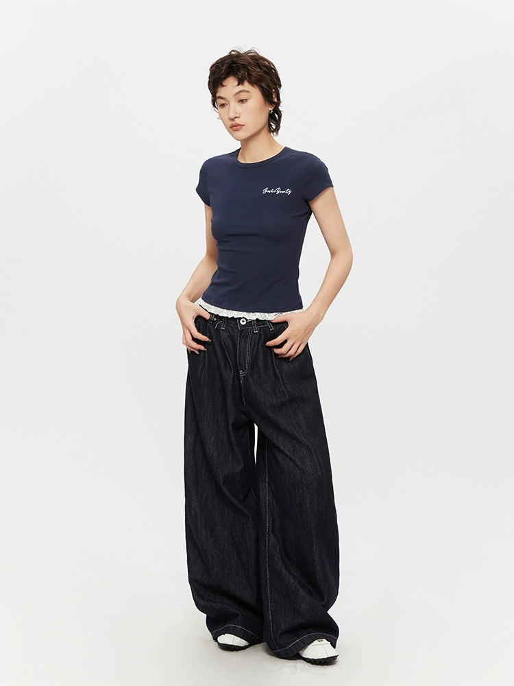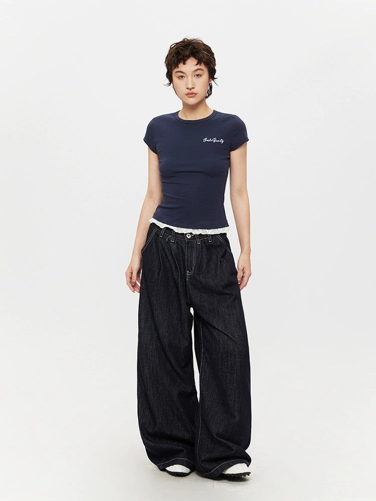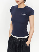 Dantel Kenar Fitili Kısa Kollu Yüksek Yaka