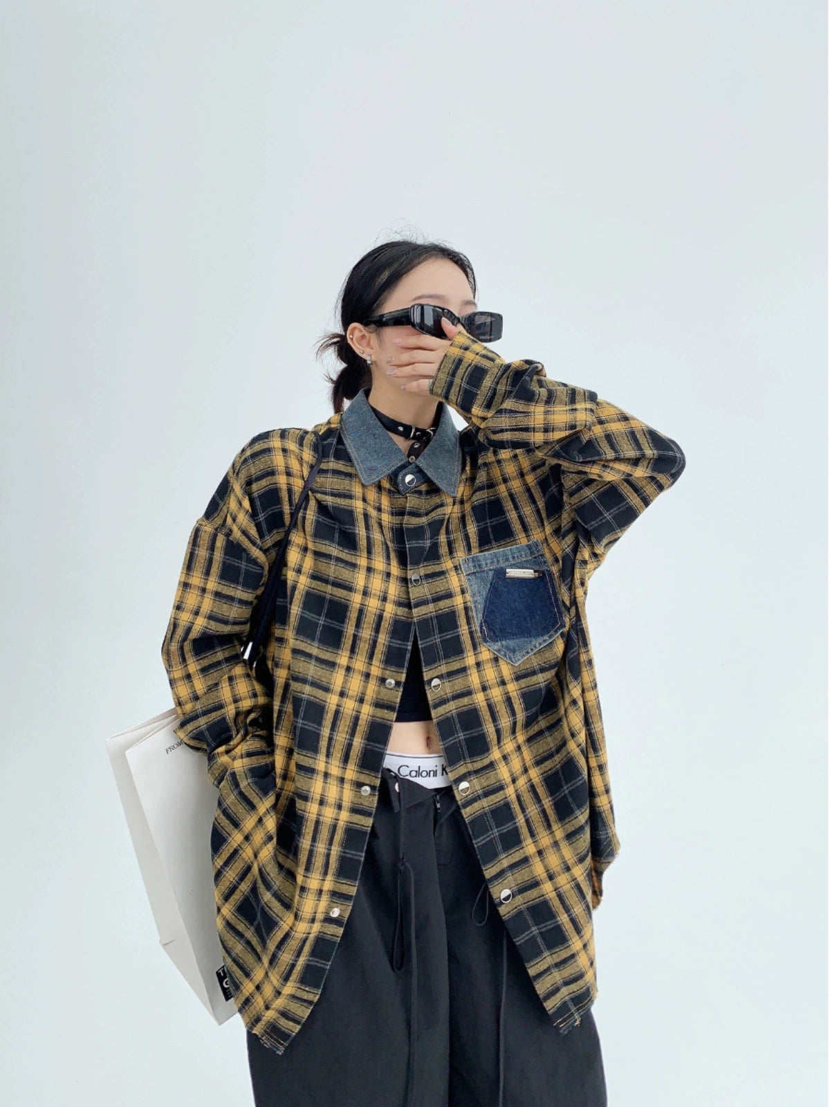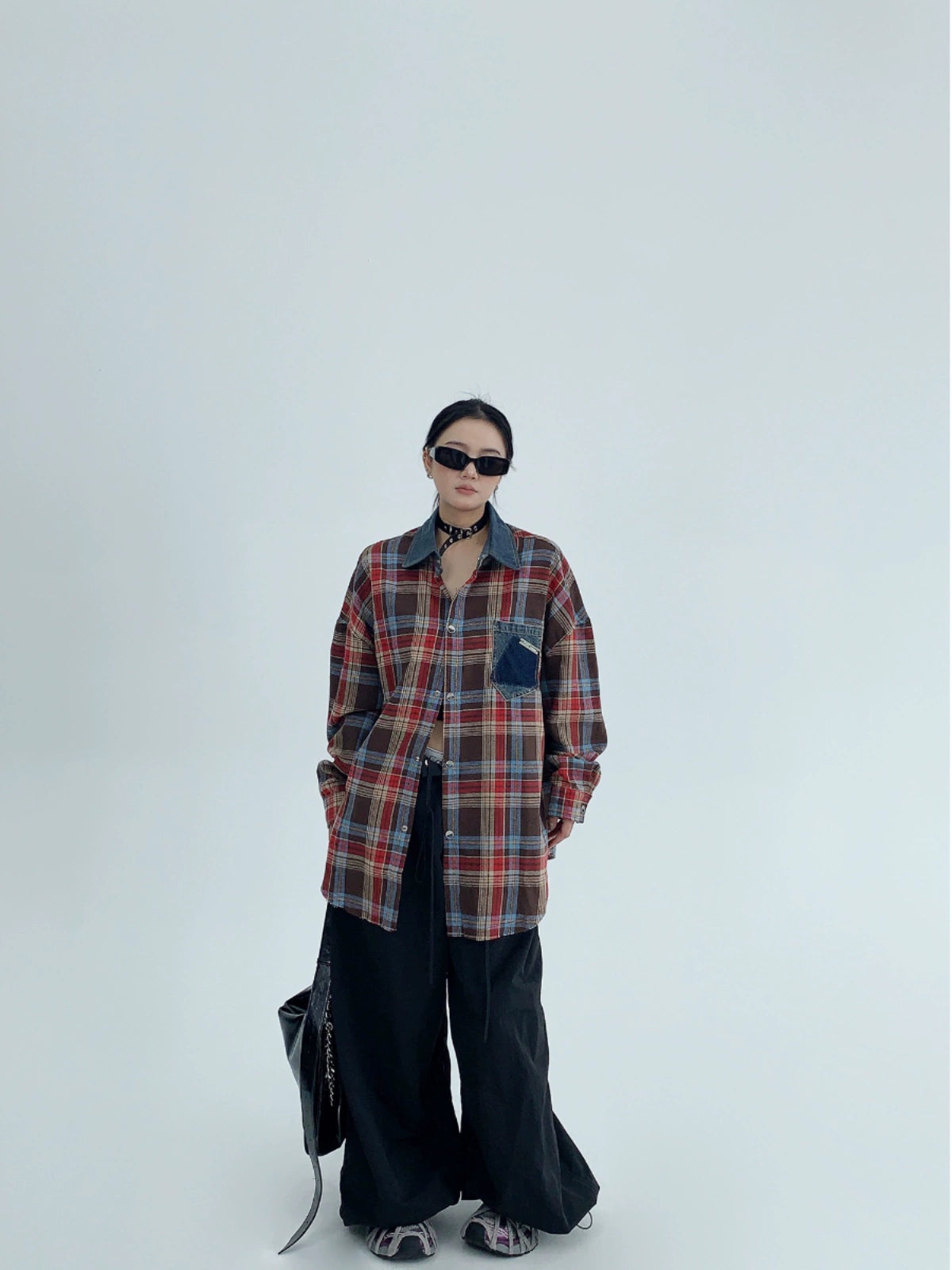 - Craft: Özel kareli kumaş / Yaka ve göğüs cebinde denim yamanması