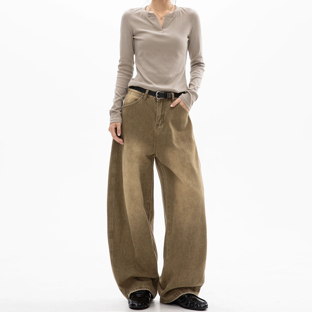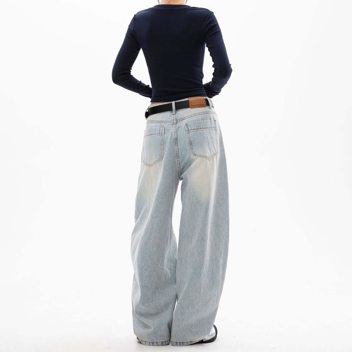 Retro Yıpranmış Geniş Paça Düz Pantolon