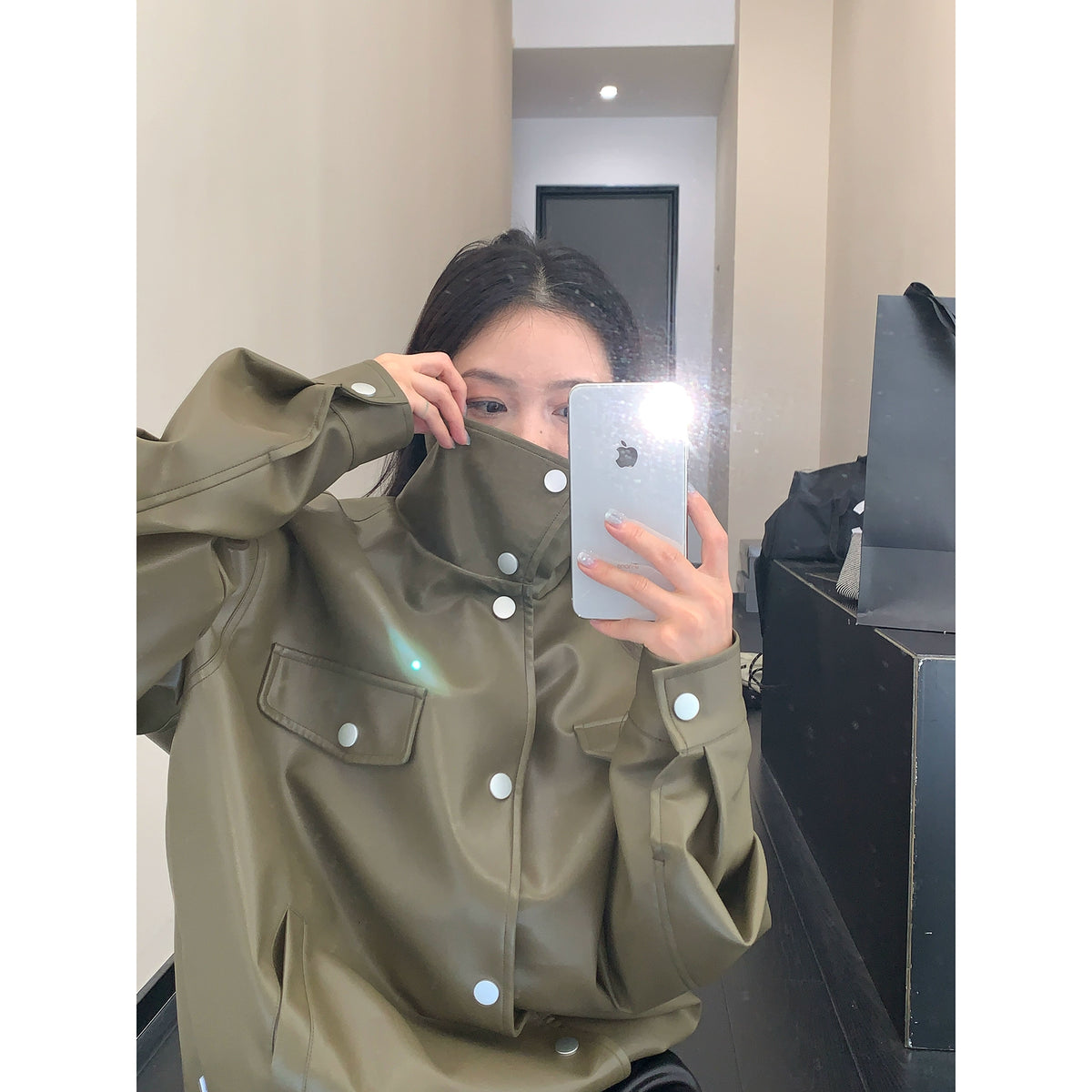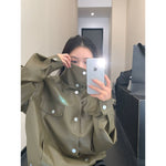 Retro Bol Kesim Stand Yaka PU Deri Ceket