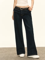 Volanlı Bel Detaylı Retro Geniş Paça Kot Pantolon