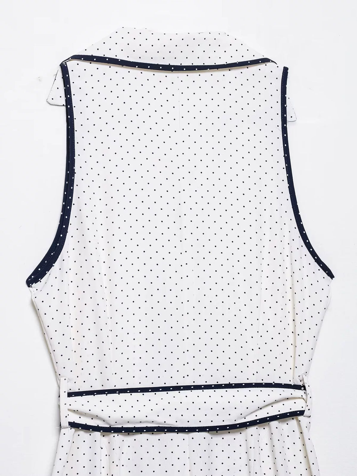 Kolsuz Puantiye Düğmeli Midi Elbise