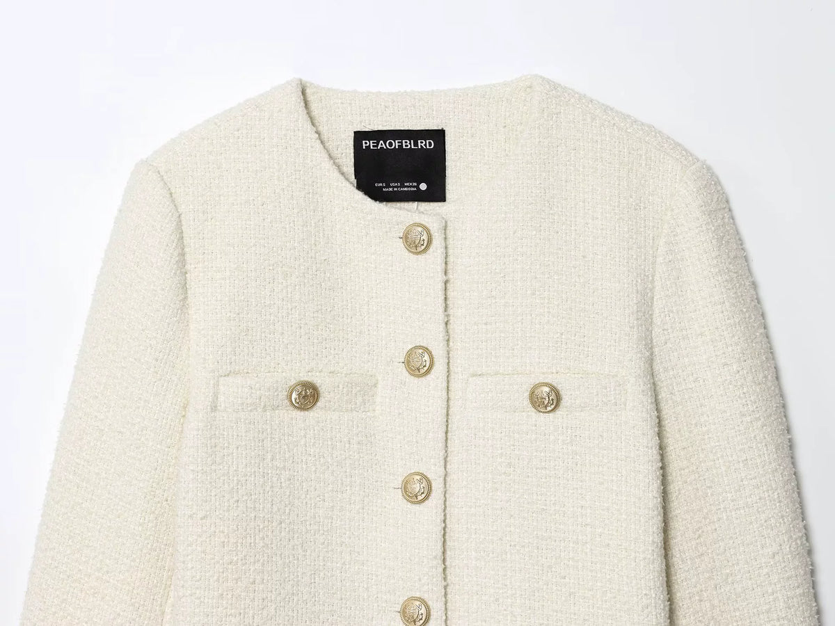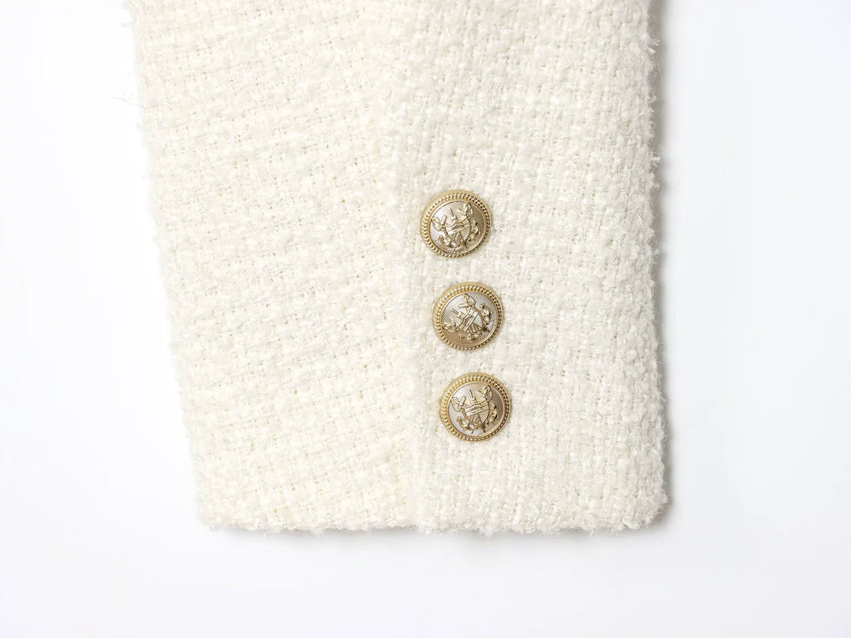Tweed Metal Düğmeli Kısa Ceket
