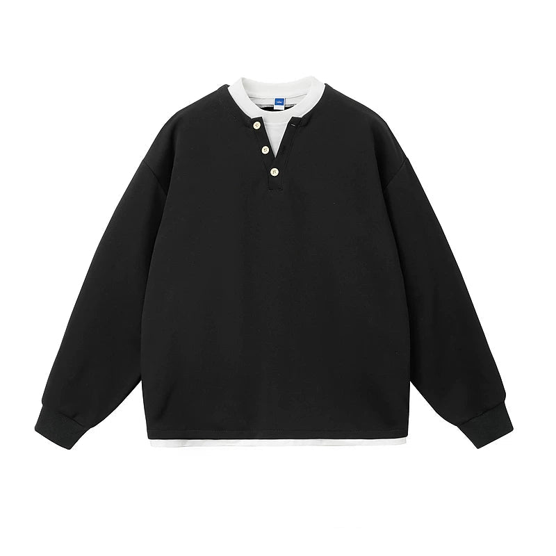 Sahte Katmanlı Henley Uzun Kol Tişört